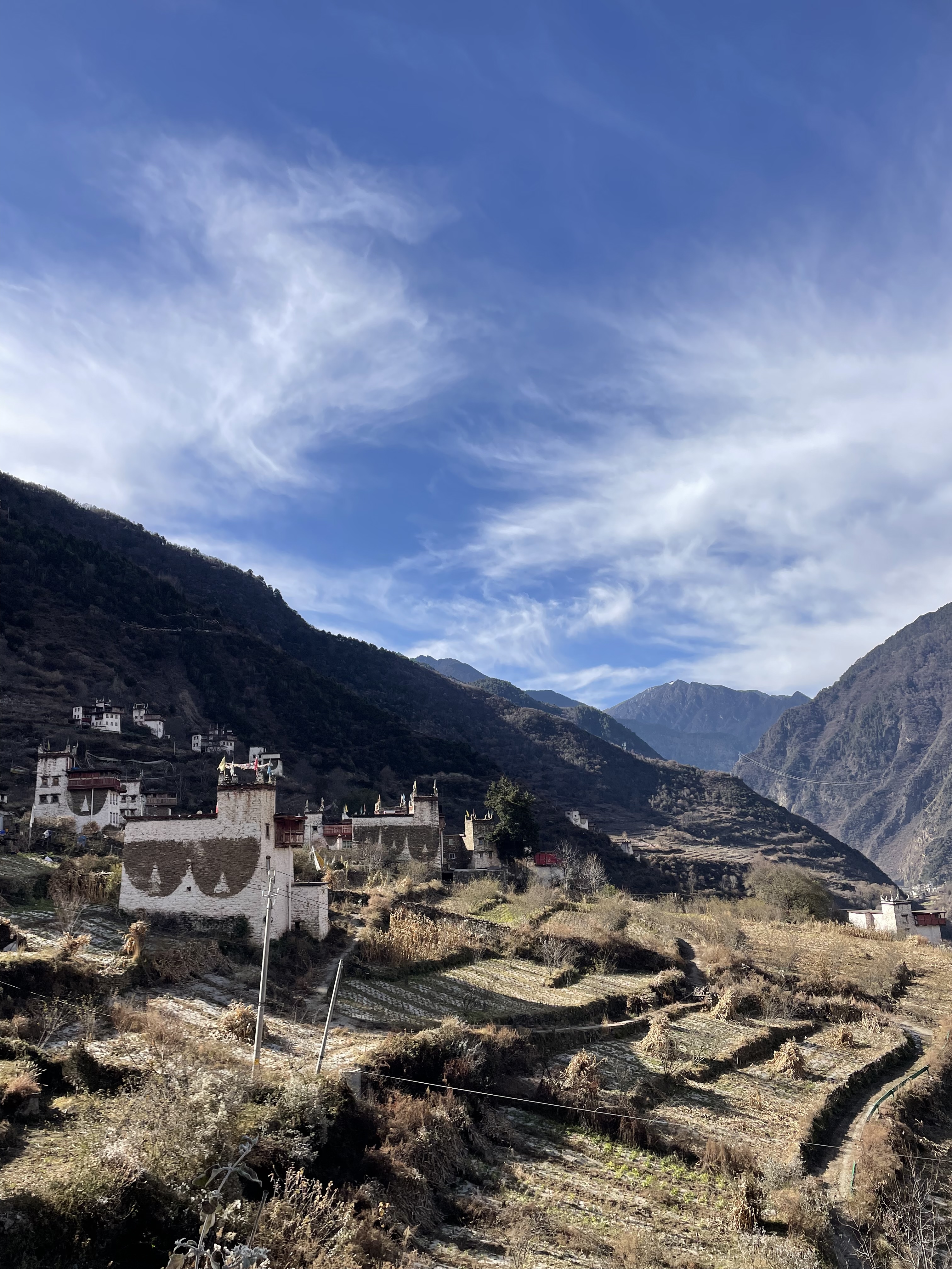 A traditional Tibetan village on a steep hillside between Tagong and Danba County, within the Garzê Tibetan Autonomous Prefecture, Sichuan, China.